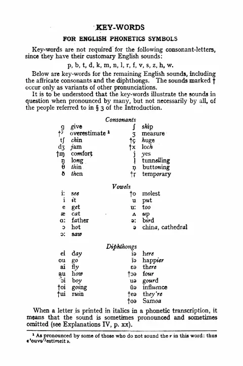 1917年,英国语言学家丹尼尔·琼斯(Daniel Jones)依据国际音标(IPA)并选用其中部分字符,编写并出版了《英语发音词典》(English Pronouncing Dictionary,简称EPD)。